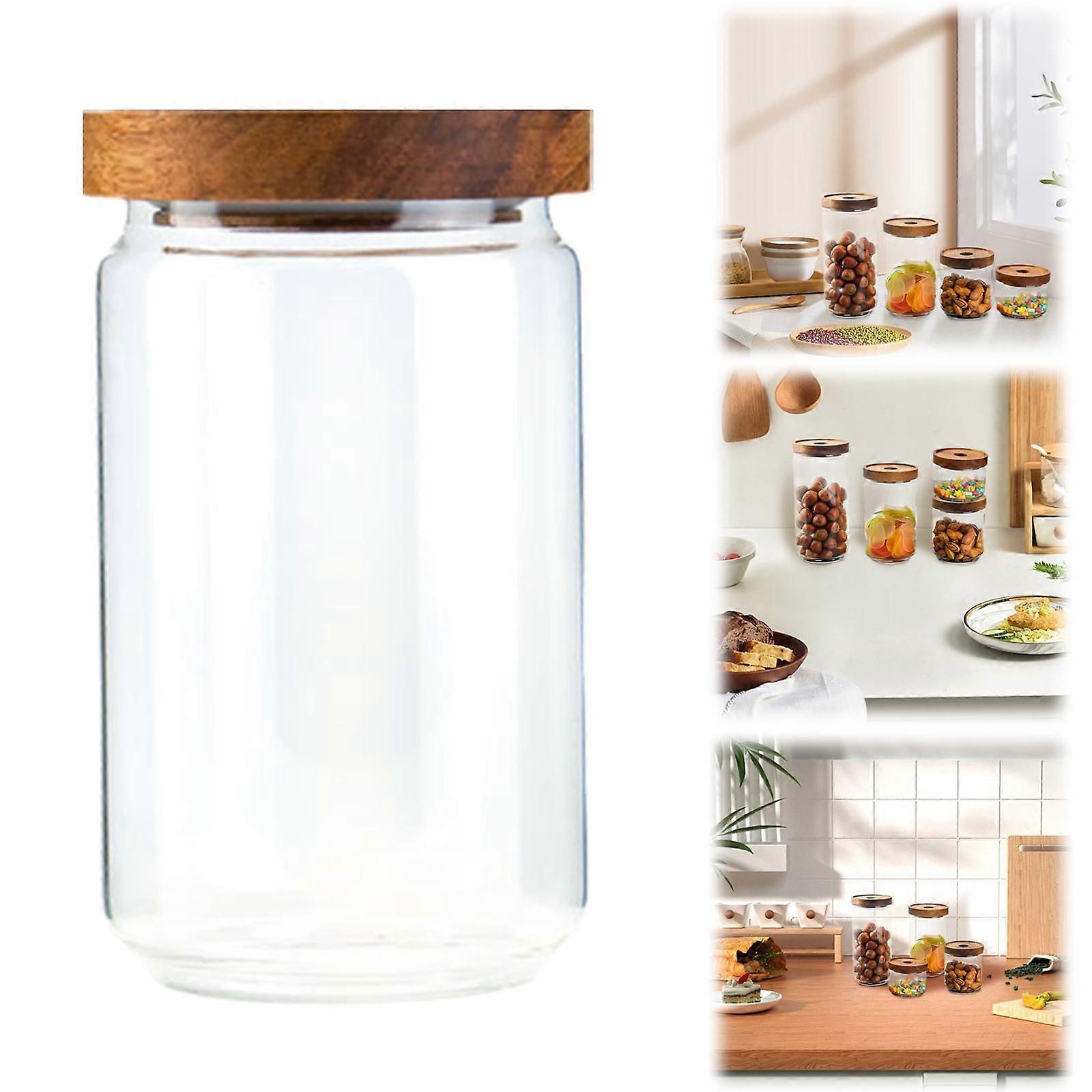 Storage Jar Set 750Ml, Flmtop Glass Airtight Bottle with Wood Lid Tea Food Jar Container Simple Wood, Multi-Color, 1 Fruit Jar, by Meiiso