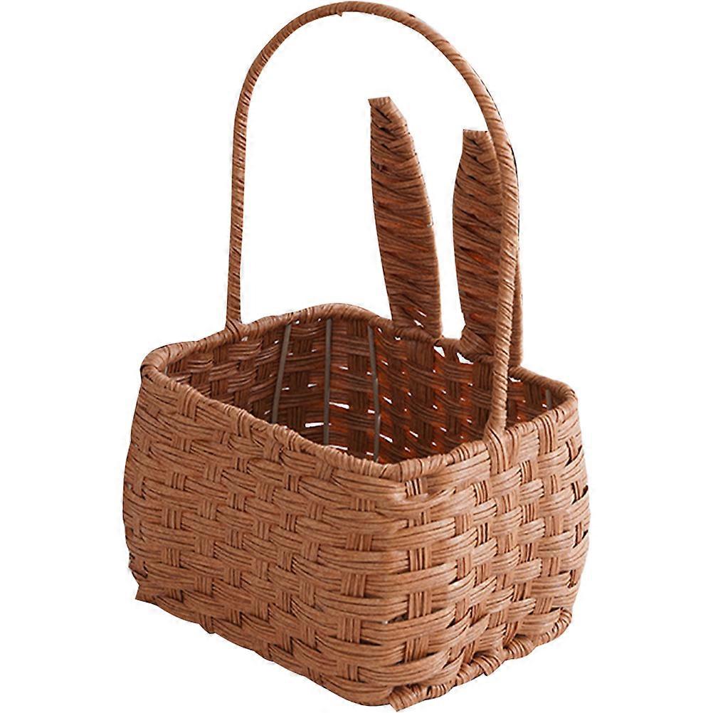 Portable Rattan Woven Basket Cute Bunny Shape Hand Woven Basket Fruit Vegetable Storage Basket