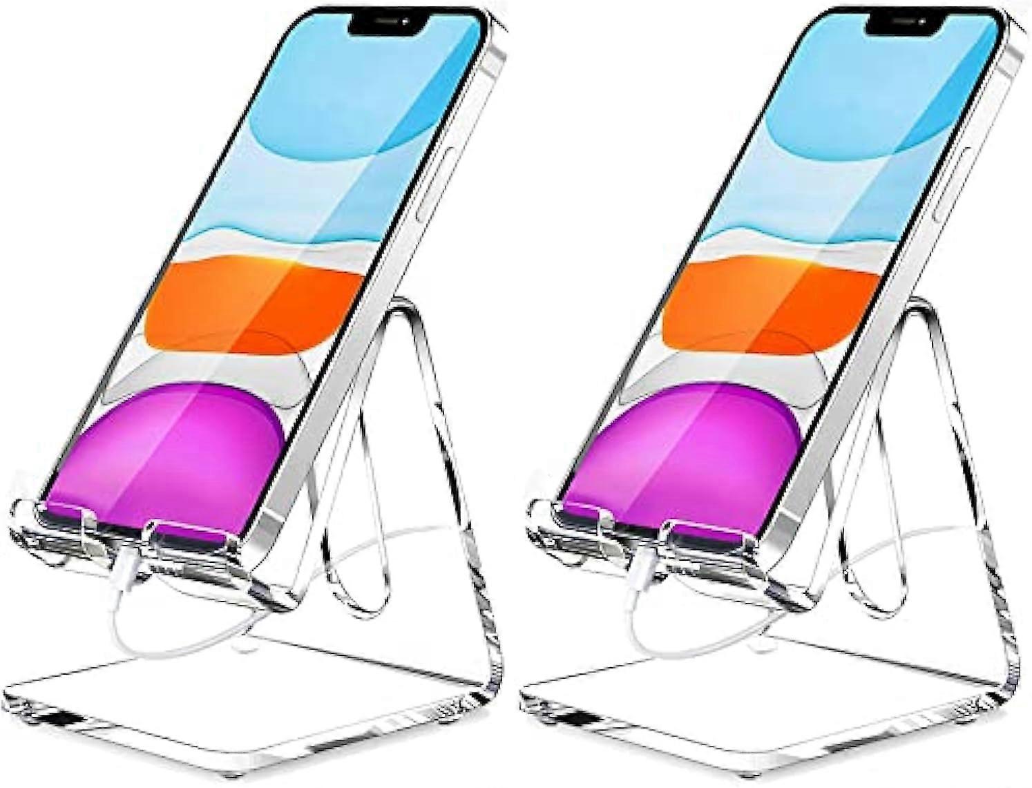 Clear Acrylic Cell Phone Stand for Desk, 2 Pack