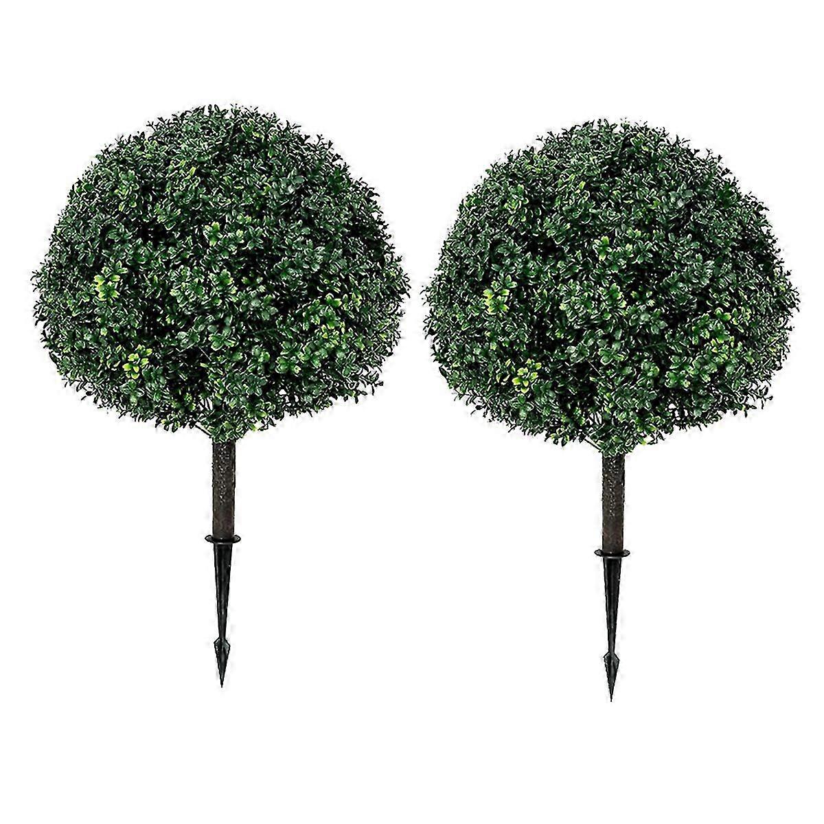 UV Resistant Artificial Boxwood Ball Trees 2-Pack with Spikes