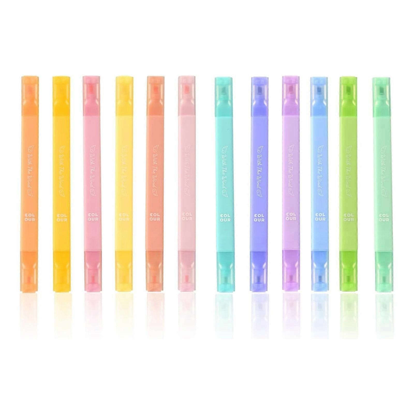 Winysin Highlighters 12pc Set Assorted Soft Chisel Tip Cute Mild Colors Retro Barrel for Color Coding (3ML)
