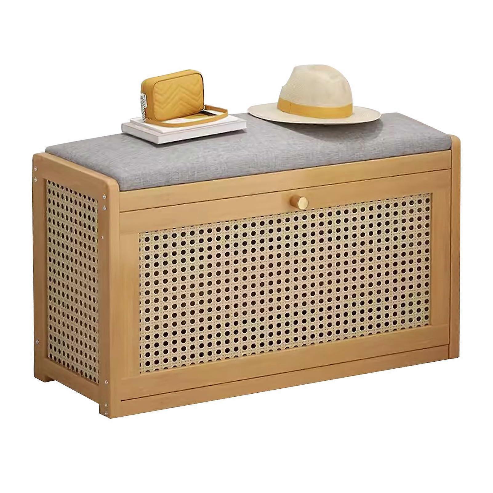 Wood Shoe Rack, 2-Tier Storage Shelf with Linen Cushion, Entryway Bench, Dimensions 70 x 25 x 45 cm