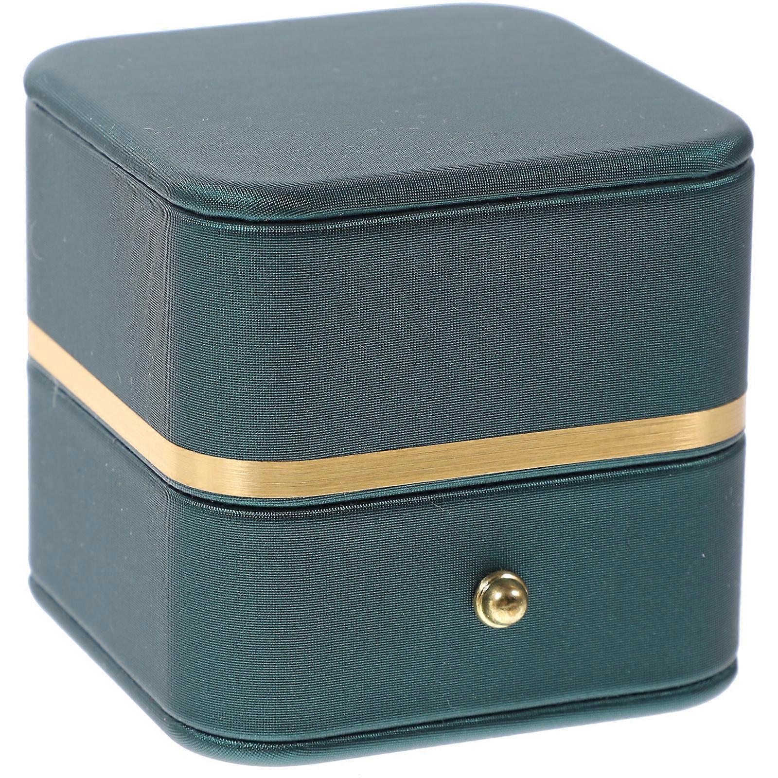 Gorgeous Jewelry Storage Box With Golden Border For Rings Wedding Display 2Pcs Dark Green