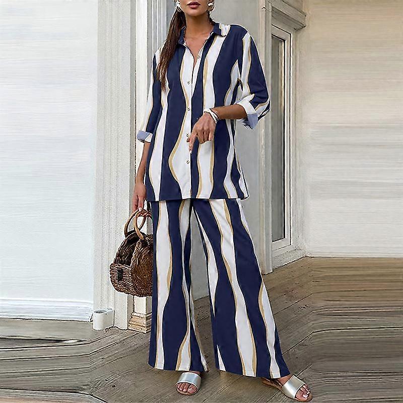 ZANZEA Women Long Sleeve Blouse and Pants Casual Print Two Piece Suit Sets